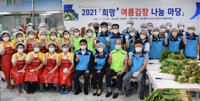 달서구자원봉사센터 주관 '희망⁺ 여름김장 나눔 마당'은 홀몸어르신 등 어려운 이웃에게 여름철 대표음식인 열무 물김치를 전달함으로써 이웃사랑을 실천하기 위해 마련했다.
