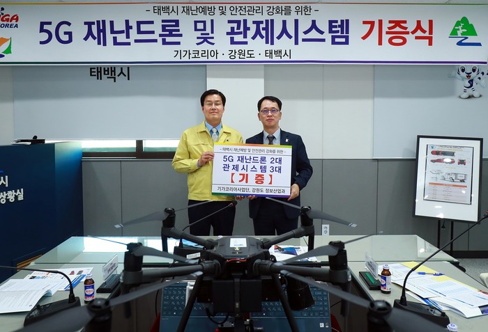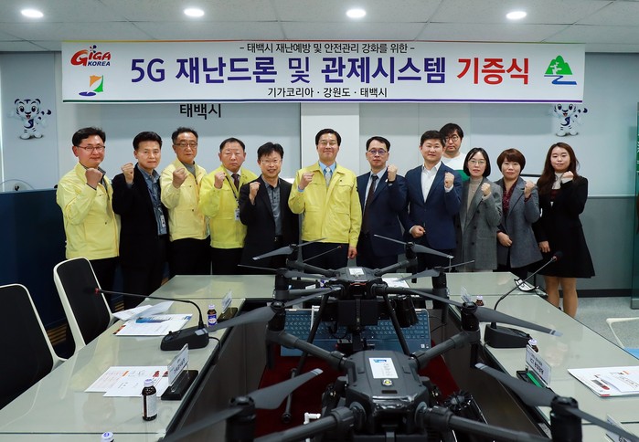 [로컬세계 박상진 기자]강원 태백시는 3일 오전 태백시청 재난안전종합상황실에서 5G 재난안전드론 기증식을 개최했다고 밝혔다.