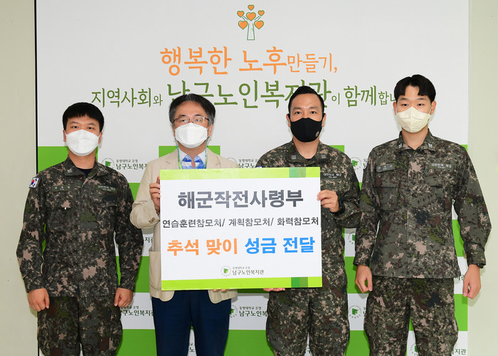 남구 노인사회복지관에 성금을 전달한 해작사 박영균 중사는 “해군 장병들의 마음을 담은 선물을 통해 어려운 이웃이 따뜻한 추석을 보냈으면 좋겠다”고 소감을 밝혔다.