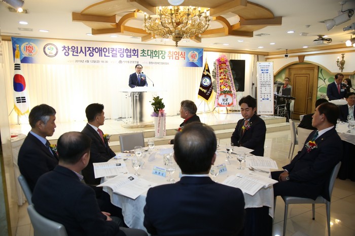 지난 12일 경남 마산아리랑관광호텔에서 열린 취임식에는 창원시장애인체육회 회장인 허성무 시장을 비롯해 박성호 창원시지체장애인회장, 최옥환 마산회원구청장 등 100여 명이 참석했다.