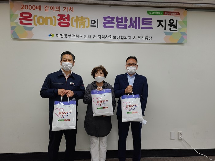 '온(ON)정(情)의 혼밥세트 지원 사업'은 이천동 지역사회보장협의체와 복지통장이 협력해 위기가구를 발굴하고 복지통장이 그 가구에 8개월간(11월까지) 매월 1회 직접 방문해 혼밥 세트를 전달하며 안부를 확인하는 등 고독사를 예방하기 위해 마련된 사업이다.