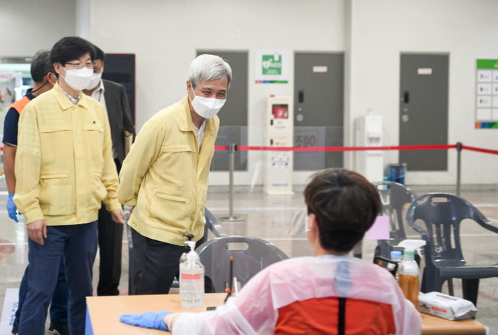 이날 곽 시장은 코로나19 대응을 위한 최일선 현장인 선별진료소, 임시선별검사소, 백신예방접종센터를 비롯해 노인시설 요양원을 방문했다.