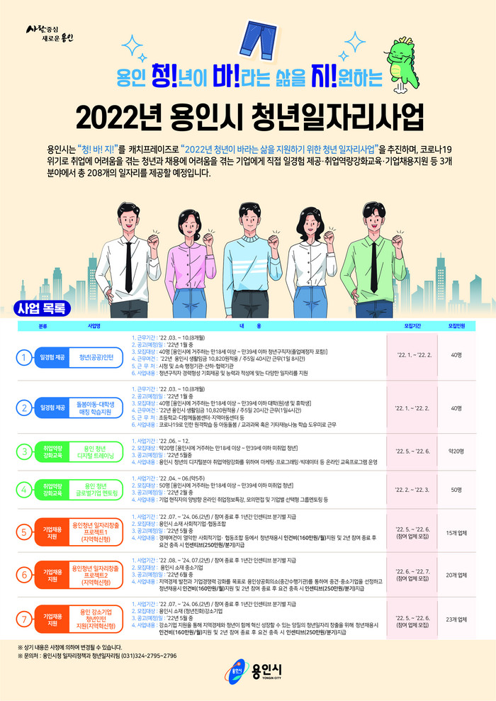 | ▲2022년 용인시 청년일자리 사업 안내. |