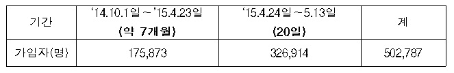 18일 미래부에 따르면 지난달 24일 휴대폰 요금할인율을 20%로 올린 이후 20일 만에 33만 명이 신규로 가입했으며, 이는 할인율 상향 전과 비교해 일평균 가입자가 19배 이상 증가한 것으로 나타났다.