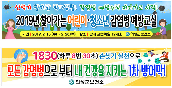 | ▲2019 어린이감염병예방교실 현수막 사진.(의성군 제공) |