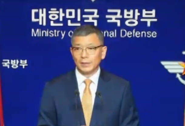 ▲류제승 국방부 국방정책실장이 8일 기자브리핑에서 주한미군에 사드를 배치하겠다고 밝히고 있다. 사진은 이브리핑 화면 캡쳐. |