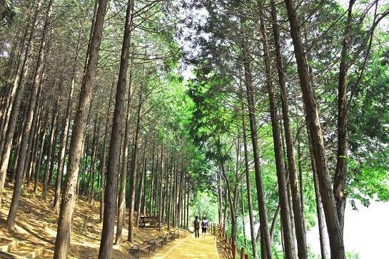 | ▲편백나무의 맨발로 황토숲길 부산의 DMZ라 불린다. |