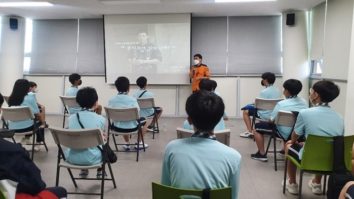 '미래소방관 체험교실'은 소방관 진로탐색(소방 채용절차, 소방관련 학과 소개 등), 직업체험(소방공무원 현장활동의 이해, 소방장비 및 차량 소개 등), 안전교육(소화기사용법, 완강기사용법 등)으로 구성돼 있다.
