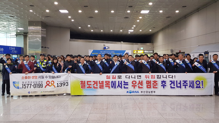 [로컬세계 맹화찬 기자]코레일 부산경남본부는 11일 ‘철도교통안전의 달’을 맞아 유관기관 합동 ‘철도교통안전 캠페인’을 전개했다고 밝혔다.