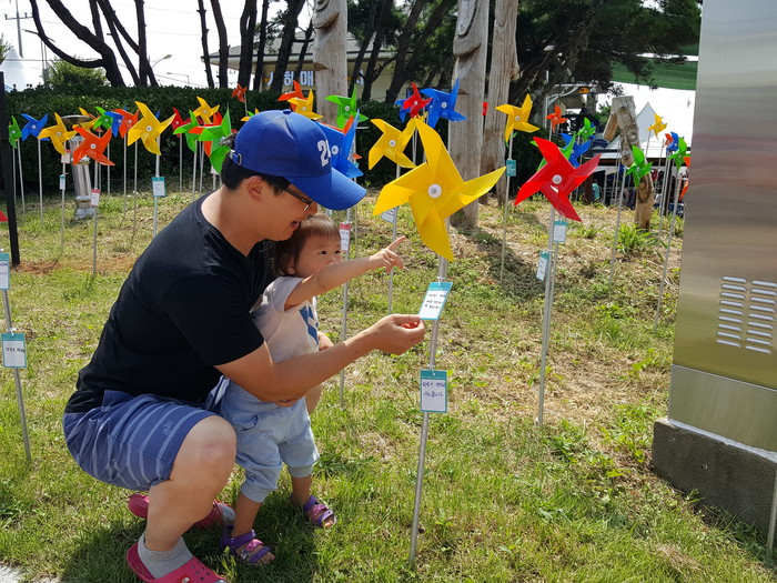 | ▲평화 바람개비 이벤트 체험을 하는 가족. |