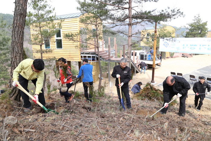 이날 행사에는 황정수 군수를 비롯한 관련 공무원들과 기관 사회단체 관계자, 그리고 주민 등 300여명이 참석해 1ha 규모에 편백나무 1500그루를 심었다.