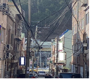 | ▲해운대구는 반송지역 골목길 마다 거미줄처럼얽혀 있는 공중선 모습 |