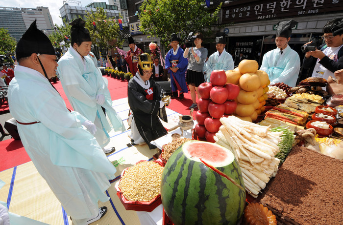 ▲ 2013년 한방축제 장면 - 유덕열 동대문구청장(가운데) 보제원 제사 © 로컬세계 |