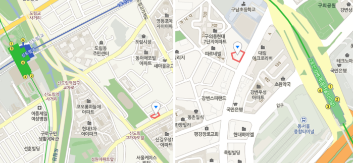 ▲영등포구 도림동 250-20번지, 광진구 구의동 587-62번지 일원 역세권 청년주택 위치.(출처=네이버 지도 캡처) |