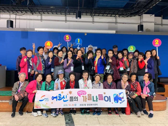 [로컬세계 맹화찬 기자]부산 동구 초량2동 지역사회보장협의체(공공위원장 박영환, 민간위원장 이성수)는 지난 29일 가을을 맞이해 홀로 사는 어르신 및 자원봉사자 등 40명을 모셔 관내 삼계탕집에서 맛있는 점심을 대접하고 해운대 소재 아쿠아리움으로 행복한 가을나들이를 다녀왔다.
