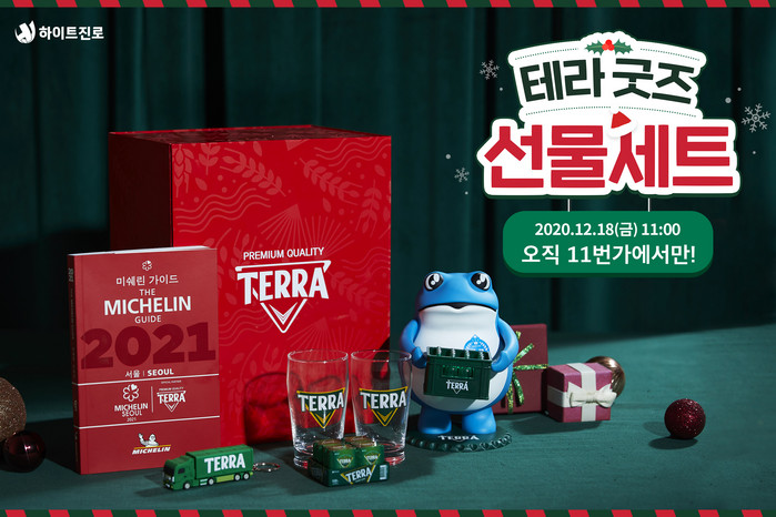하이트진로(대표 김인규)는코로나 19 등으로 침체된 연말연시 소비자들에게 색다른 즐거움을 제공하기 위해 테라 브랜드 신상 굿즈 4종과 2021 미쉐린 가이드북으로 구성된 선물세트를 제작, 한정 판매한다고 17일 밝혔다. 오는 18일 11시에 오픈마켓 11번가 타임딜을 통해 단 1000세트만 판매한다. 가격은 배송비 포함 3만원이다.