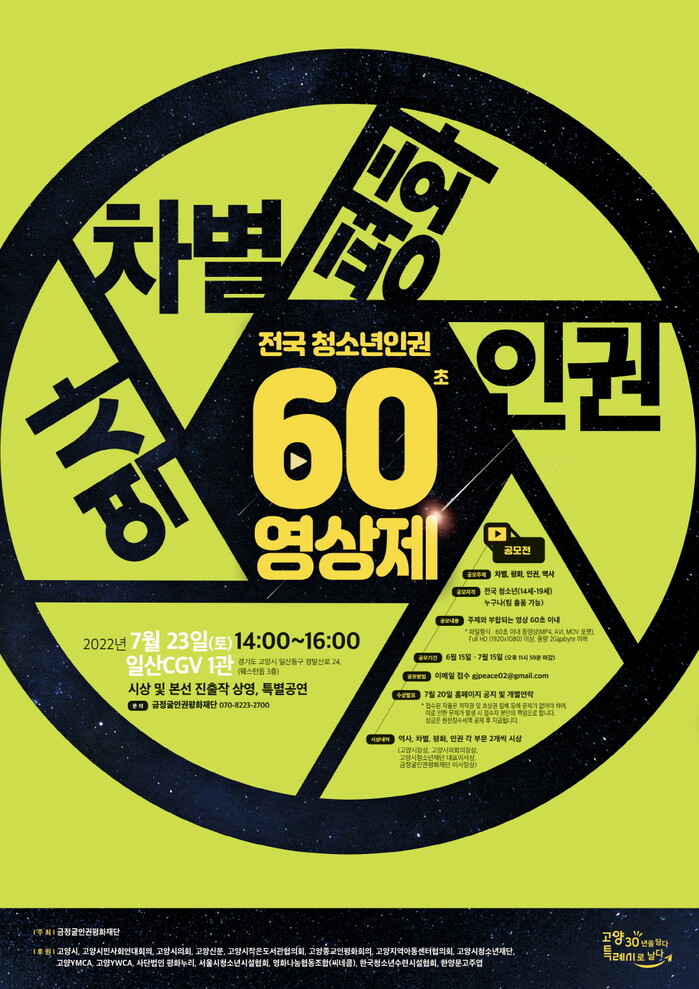 [로컬세계 = 이영원 기자]경기 고양시 2022년 제1회 전국 청소년 인권 60초 영상 공모전을 개최한다.