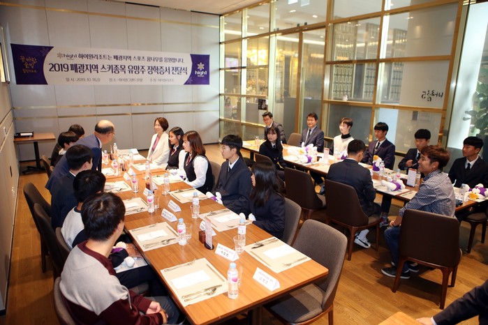 이날 전달식을 통해 국가대표 후보에게는 각 1000만원이, 청소년대표에게는 각 500만원 장학금이 전달됐다. 전달된 장학금은 전지훈련, 시합출전, 장비구입 등 선수의 기량 발전을 위해 쓰일 예정이다.