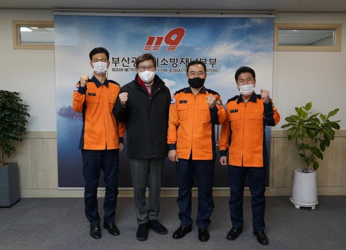 | ▲박형준 국민의힘 부산시장 예비후보는 11일 오전 부산소방재난본부를 방문해 설연휴에도 시민의 생명과 안전을 지키는 소방공무원을 만나 애로사항을 청취 했다.(박형준 국민의힘 부산시장 예비후보 제공) |