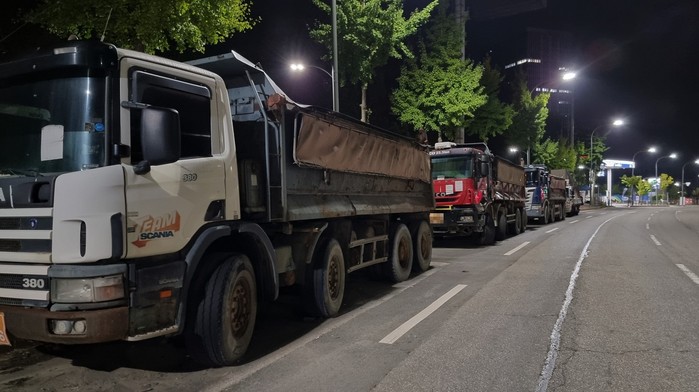 | ▲기흥역~신갈역 도로 주변에 덤프트럭 등 건설기계가 불법 주기되어 있는 모습. 용인시 제공 |