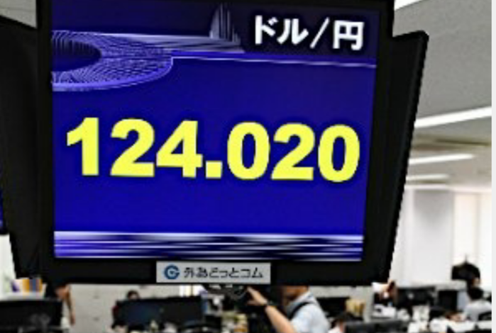 ▲28일 오후 도쿄외환시장의 엔화 시세가 1달러에 124엔 20전을 보이고 있다. |