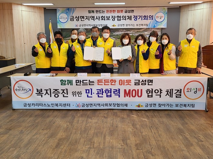 [로컬세계 박상진 기자]경북 의성군 금성면지역사회보장협의체(공동위원장 박재윤, 박창호) 지난 25일 지역복지 협력과 노인복지 증진을 위해 금성카리타스노인복지센터와 업무협약을 체결했다고 30일 밝혔다.