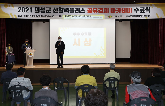 [로컬세계 박상진 기자]경북 의성군은 지난 26일 의성군 청소년센터 대강당에서 신활력플러스 공유경제 아카데미 수료생과 관계자 등 70여 명이 참석한 가운데 ‘신활력플러스사업 공유경제 아카데미 수료식’을 개최했다고 31일 밝혔다.
