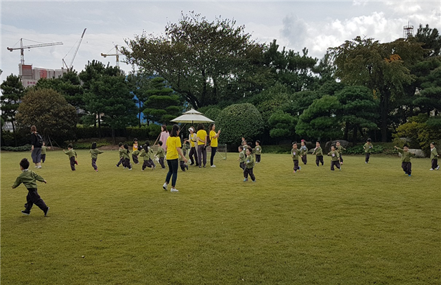 | ▲완전 개방 이후 어린이들 운동회 장소로 활용되는 잔디정원.(부산시 제공) |