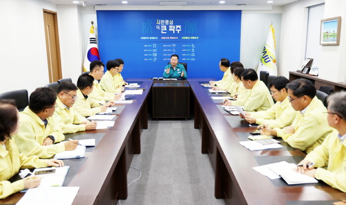▲ 사진은 지난 7월 18일 진행된 수해 비상대책회의 모습.(파주시 제공) |
