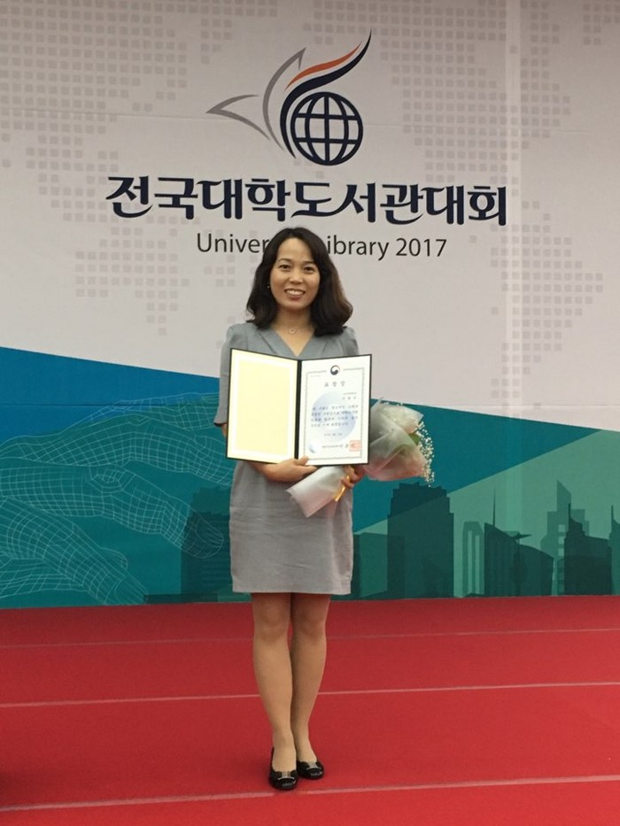 [로컬세계 양해수 기자]전북 군산대학교 도서관에 근무하는 이현주(40) 주무관이 대학도서관 발전에 이바지한 공로를 인정받아 지난 22일 청주에서 열린 전국대학도서관대회에서 교육부장관상을 수상했다.