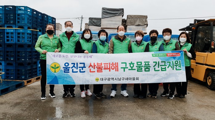 [로컬세계 박세환 기자]대구 남구새마을회(회장 이현숙)에서 지난 17일 산불피해를 입은 울진군 이재민들을 위해 구호물품(생수, 300만원 상당)을 지원했다.