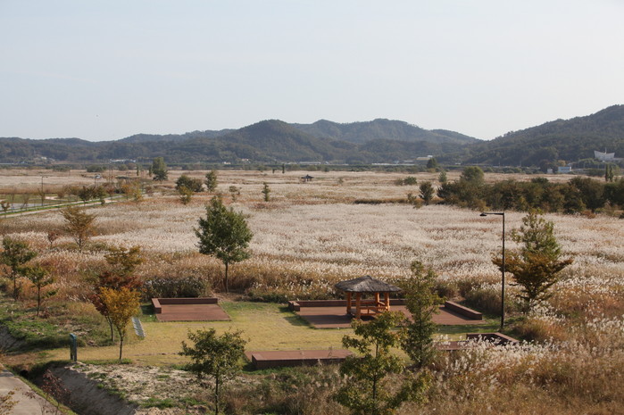 부여읍 군수리~현북리까지 이어진 5km 백마강변에는 억새밭군락지가 깊어가는 가을의 정취를 은빛으로 물들이고 있다.