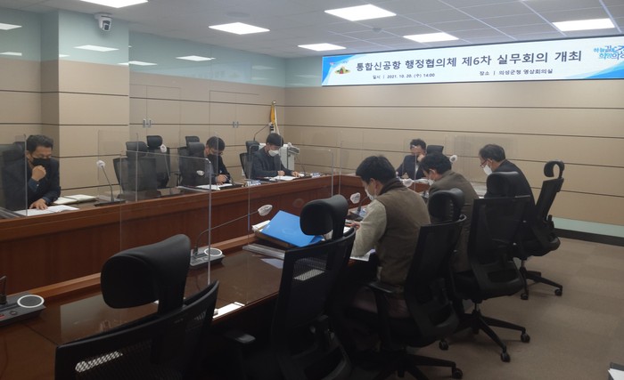 [로컬세계 박상진 기자]경북 의성군은 지난 20일 통합신공항의 성공적인 이전과 의성군 발전방안이 담긴 공동합의문 실현을 위한 통합신공항 행정협의체 제6차 실무회의를 개최했다고 21일 밝혔다.