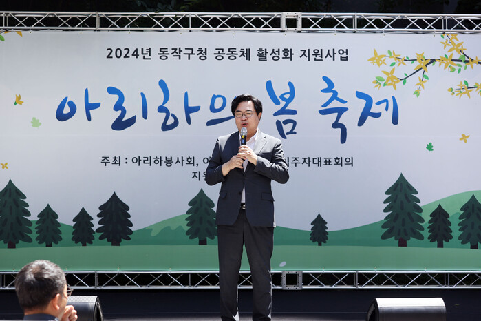 ▲ 아리하의 봄 축제에서 인사말씀을 하고 있는 박일하 동작구청장.(동작구 제공) |