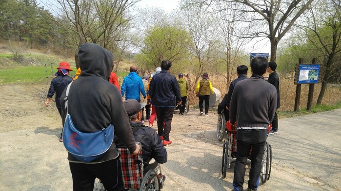 이날 사회봉사명령 대상자 8명은 장애인이 탄 휠체어를 밀고 당기면서 함께 우포늪 생태탐방로를 거닐었다.