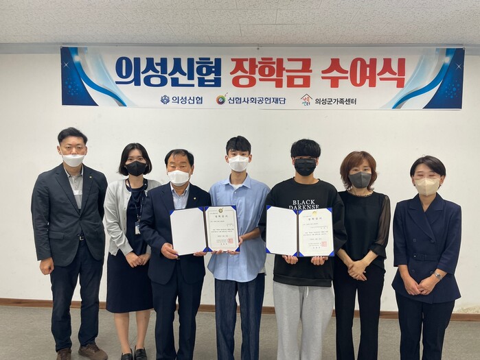 [로컬세계=박상진 기자]경북 의성신협(이사장 박영철)은 지난달 30일 의성군가족센터에서 추천한 경제적 어려움이 있는 다문화가족의 대학생 2명에게 총 200만원의 신협 장학금과 장학증서를 수여했다고 6일 밝혔다.