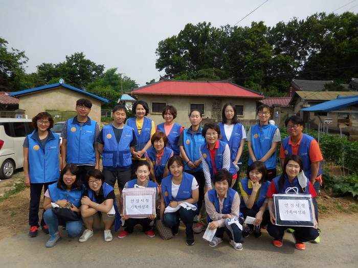 | ▲지난 23일 가족여성과 직원들이 봉사를 마치고 기념촬영을 하고 있다.(안성시 제공) |
