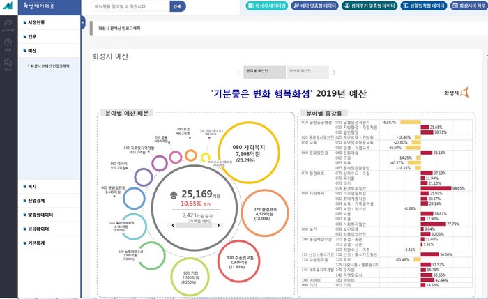 화성 데이터로는 효율적이고 스마트한 행정을 실현하고자 공직자들에게 서비스해왔던 빅데이터 플랫폼을 시민들도 이용할 수 있게끔 새롭게 구축한 것이다.