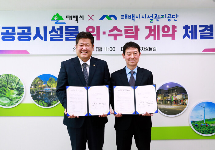 이날 체결식은 이상호 태백시장과 남궁 증 태백시시설관리공단 이사장이 참석한 가운데 공공시설물 위·수탁 계약서 서명, 기념 촬영 순으로 진행됐다.