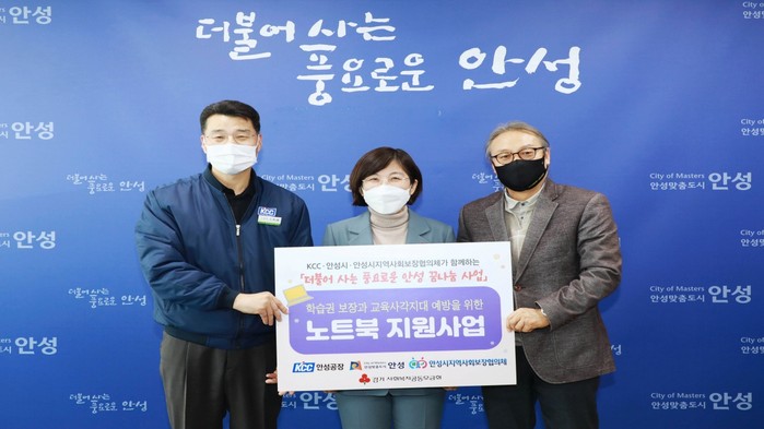 [로컬세계 김병민 기자]경기 안성시·안성시지역사회보장협의체와 KCC는 올해 10월부터 학습용 노트북 30대를 지원하는 더불어 사는 풍요로운 안성 꿈나눔 사업을 진행했다고 21일 밝혔다.