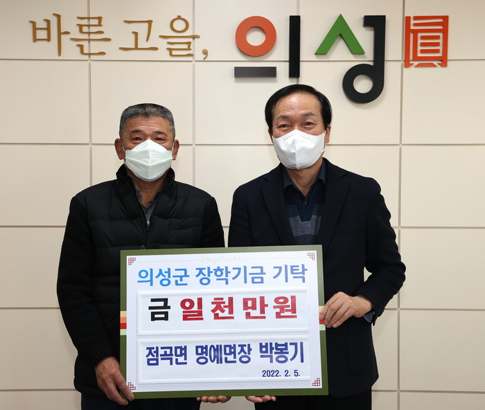2일 의성군에 따르면 점곡면 박봉기 명예면장(효진냉동 대표)은 지난 2월 5일 의성군청을 방문해 고향의 교육발전을 위한 장학기금 1000만원을 기탁했다고 밝혔다.