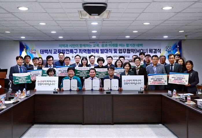 시 관계자는 “강원특별자치도교육청과 태백교육지원청을 비롯한 기관·단체장님들이 한마음 한뜻으로 우리시 교육발전과 정주여건 마련에 힘을 모아 주셔서 감사드린다. 도교육청, 강원대와 함께 지역 맞춤형 교육발전특구 모델 마련으로 태백시가 교육발전특구 시범지역 공모에 선정될 수 있도록 최선을 다하겠다”고 말했다.