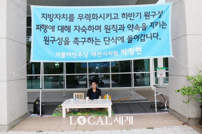 [로컬세계 오영균 기자]대전시의회 원 구성을 놓고 지난 10일부터 단식 농성을 펼쳐온 박정현 의원이 더불어민주당 중앙당 지도부가 윤리심판원에 중징계를 요청함에 따라 15일 단식을 풀었다.