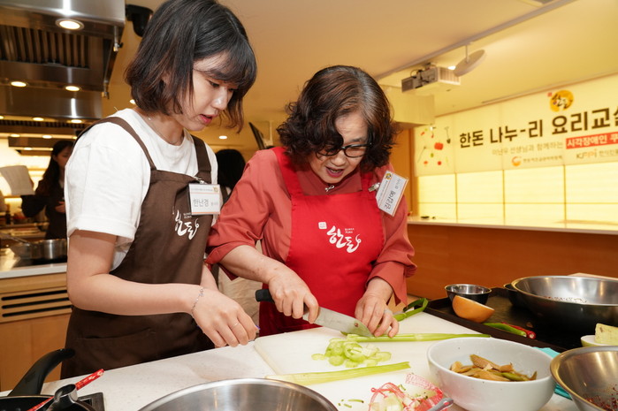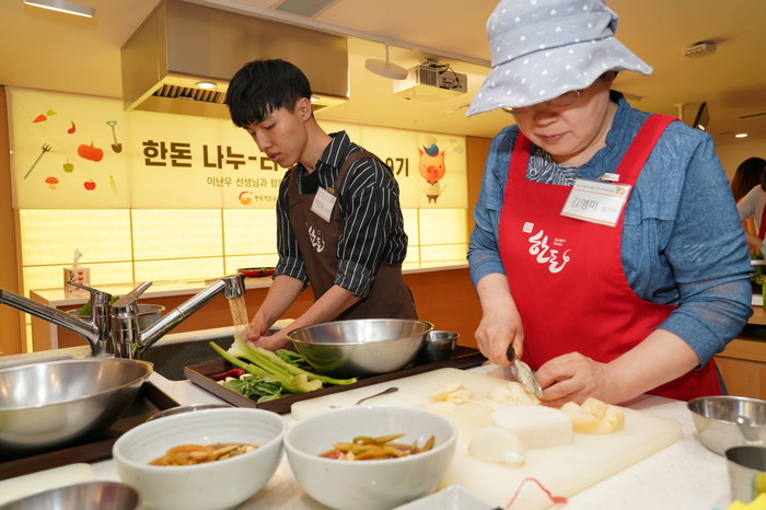 이번 한돈 나누리 요리교실은 시각장애인 6명과 자원봉사자 15명이 참여해 총 6회 걸쳐 요리 실습시간을 가졌다.(사진=한돈자조금 제공)