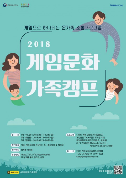 ‘2018 게임문화 가족캠프’는 온라인 신청 페이지를 통해 신청 가능하며, 행사 관련 세부 사항은 2018 게임문화가족캠프 운영팀을 통해 문의할 수 있다.