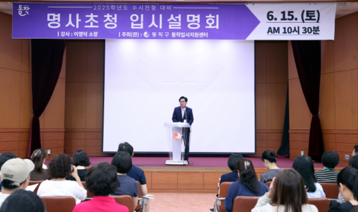박일하 동작구청장은 “이번 특강이 관내 수험생들의 수시전형 준비에 실질적인 도움이 되길 바란다”며 “앞으로도 동작입시지원센터를 통해 변화하는 입시제도에 발 빠르게 대응하며 학생과 학부모들의 입시고민을 해결하기 위해 노력하겠다”고 전했다.