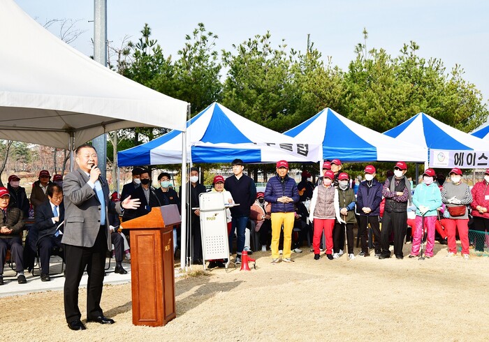김경일 파주시장은 “어르신들의 건강증진과 여가선용 기회 확대를 위해 동절기에도 운정 파크골프장 개장을 추진하겠으며, 겨울철 안전을 위해 전용 골프화 착용을 당부드린다”고 말했다. 이어 “심학산파크골프장 조기 개장 추진과 파크골프 동호인들의 폭발적인 수요에 대비해 36홀 규모의 파크골프장 추가 설치를 추진하겠다”고 말했다.