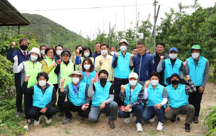 농촌인력 확보에 어려움을 겪는 농가들을 대상으로 추진한 이번 일손돕기는 농림축산식품부 95명, 경상북도 12명, 의성군 30명, 농협 37명 등 총 170여명이 참여했으며, 이들은 지원농가 4곳을 찾아 사과적과 작업에 구슬땀을 흘렸다.
