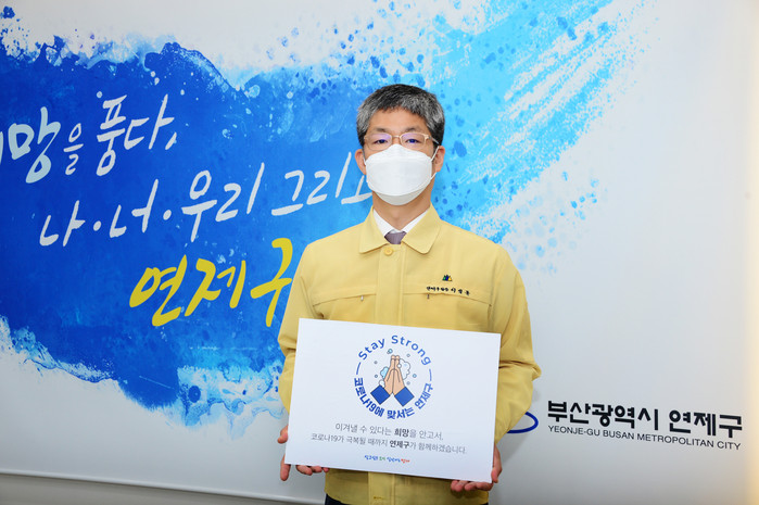 [로컬세계 맹화찬 기자]이성문 연제구청장이 지난 1일 신종 코로나바이러스감염증(코로나19) 극복을 위한 ‘스테이스트롱(StayStrong) 캠페인’에 동참했다.