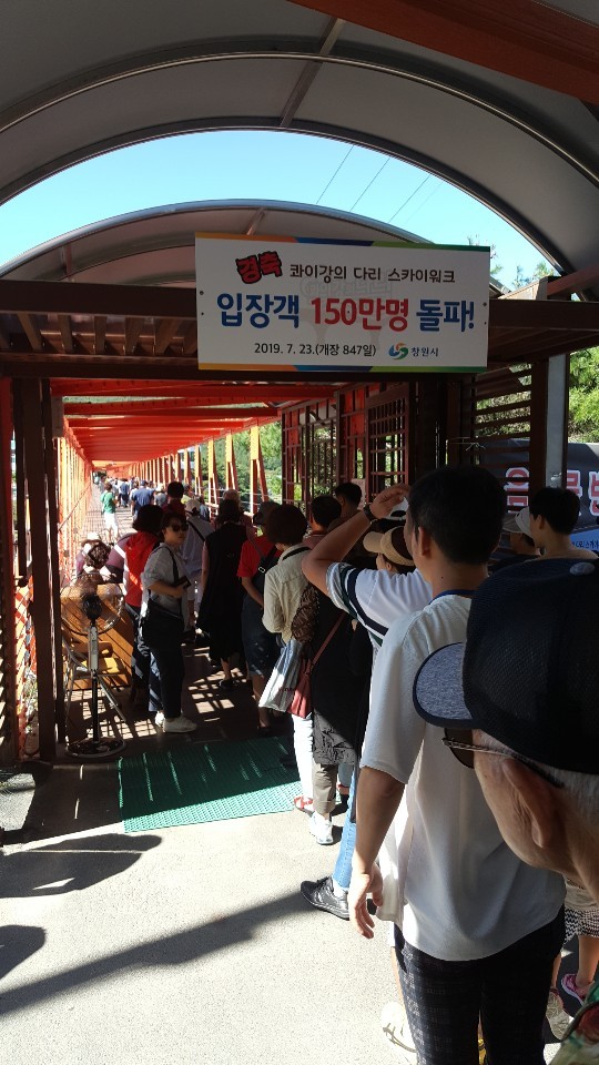 ▲마산합포구 구산면 ‘저도 연륙교 스카이워크’에서 관광객들이 다리를 건너기 위해 줄을 서서 기다리고 있다.(창원시 제공)  |